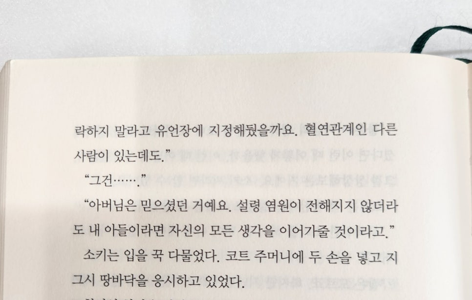 사지 도시아키는 녹나무가 주는 ‘기쿠오의 염원’이 무엇인지에 대한 설명을 듣습니다. 염원은 이를 전해주는 (도시아키의 경우에는, 그의 형인 기쿠오겠죠.) 사람, 즉 예념자의 머릿속에 있는 모든 생각이었습니다.