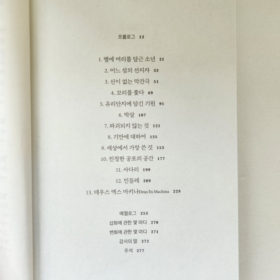 <물고기는 존재하지 않는다>는 299페이지의 책으로 그다지 두껍지 않아요. 그리고 그 안에 13 파트가 있어서, 비교적 짧은 호흡으로 각각의 부분들을 읽을 수 있어요