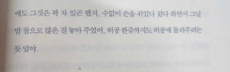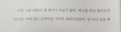 버스를 타고 돌아오면서 나는 비어 있는 손바닥을 가만히 내려다보았어. 텅 비어 있을 때에도 그것은 꽉 차 있곤 했지.