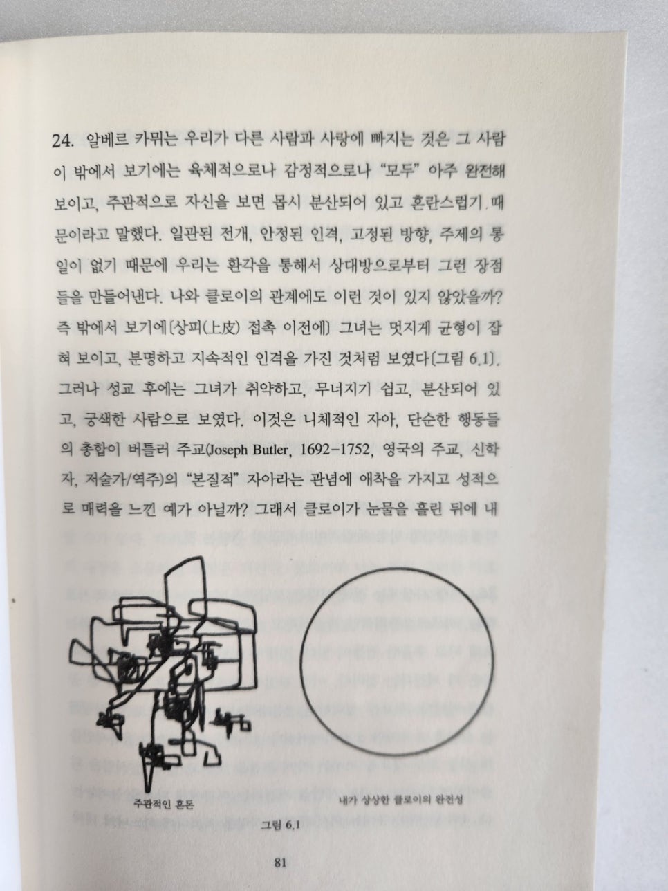 | 알베르 카뮈는 우리가 다른 사람과 사랑에 빠지는 것은 1) 그 사람이 밖에서 보기에는 육체적으로나 감정적으로나 “모두” 아주 완전해 보이고, 2) 주관적으로 자신을 보면 몹시 분산되어 있고 혼란스럽기 때문이라고 말했다. 일관된 전개, 안정된 인격, 고정된 방향, 주제의 통일이 없기 때문에 우리는 환각을 통해서 상대방으로부터 그런 장점들을 만들어낸다. 나와 클로이의 관계에도 이런 것이 있지 않았을까? |