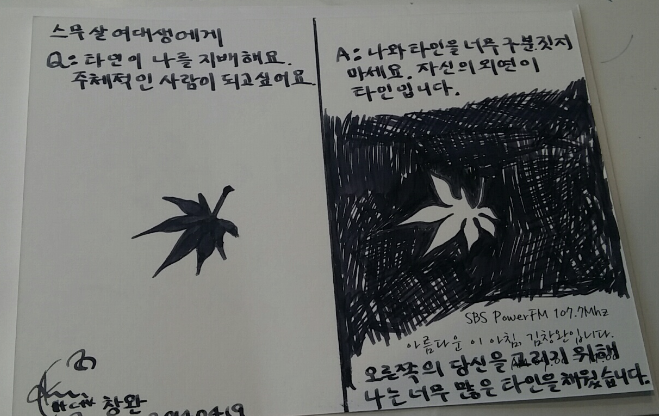 청취자들의 고민 상담에 누구보다 재치 있고 따뜻한 위로를 주신 김창완 선생님의 말에 감동을 받는 순간이었습니다.